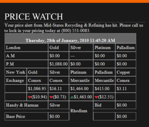 Sign up to receive a daily email with all precious metal pricing.